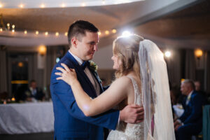 After the ceremony, the reception was in their newly renovated ballroom and they had a cute cake, first dances, and got to dance with their loved ones. Watching Chris dance with his mother was special after watching him dance with Ellen. One of our favorite memories was the sparkler send-off in the cold with everyone they care about most.