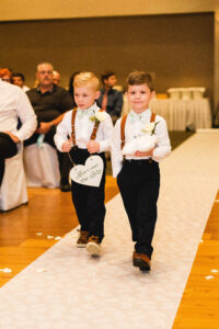 Their wedding party brought out all of the stops for the grand entrances through the send off. They brought glitter party poppers (which are NOT allowed at The Makoy Center FYI!), LED face masks and glasses, the kids entered on scooters, and the joy was radiating from everyone the entire time.