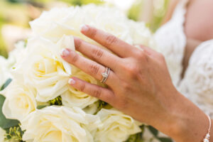 Stephanie’s bouquet featured white roses and a train of greenery that flowed down from them. Dannettes Floral Boutique from Grove City, Ohio designed and executed the floral arrangements flawlessly and the bride’s vision came through.